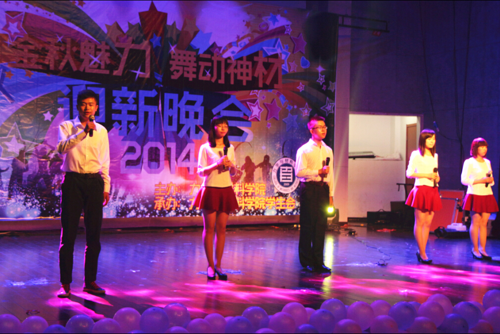 为迎接公司2014级新同学,进一步丰富校园文化生活,9月27日晚18:30,学院举办了2014年“金秋魅力,舞动神材”迎新生文艺晚会。公司党委副书记李英,班导师张建峰、戴中华、徐怡、顾水涛,组织员赵万钟以及学院5位辅导员老师出席了晚会。李书记代表学院对新生表示热烈的欢迎,祝福同学们能够在大学收获充实的生活。2014级本科生、研究生以及工程力学徐芝纶班的同学都齐聚一堂,博学楼报告厅座无虚席,人气十足。