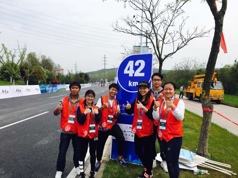 在溧水马拉松中,公司有一人为志愿者骨干,岗位是草莓补给站总负责,任务是给完赛运动员发配草莓;公司其余志愿者的岗位是5公里cosplay,扮演各类人物,活跃比赛气氛,cosplay是溧水马拉松的一大亮点,广受好评。在江宁牛首山国际马拉松中,公司志愿者被分配的岗位较多,包括获奖运动员引导、人墙管理、举牌志愿者、更衣区和存包处志愿者。负责获奖运动员引导的志愿者主要是引导运动员去补给处和颁奖处;人墙管理的志愿者负责将特邀运动员、全程运动员、半程运动员和乐跑运动员分隔开,这个任务危险系数较大,因为参赛选手太多,开跑的一瞬间志愿者很容易被人流冲倒,因此对志愿者来说保护好自己比任务本身更重要;举牌志愿者通过牌子上的文字来达到活跃气氛和指引方向的目的;更衣区和存包处的同学任务更艰巨,一要保证运动员物品的安全,二要按号码将几千件运动员物品排好序从而在运动员来领取物品时,能快速高效的找到物品。