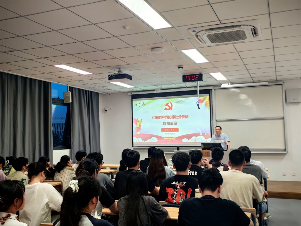 5月20日,bw必威西汉姆联官网2023级硕士党支部在常州校区2号楼A211开展“学党规党纪,树廉洁新风”主题党日活动。公司党委副书记、副经理刘峰讲授党纪学习教育专题党课,常州校区的研究生、本科生60余人参加。
