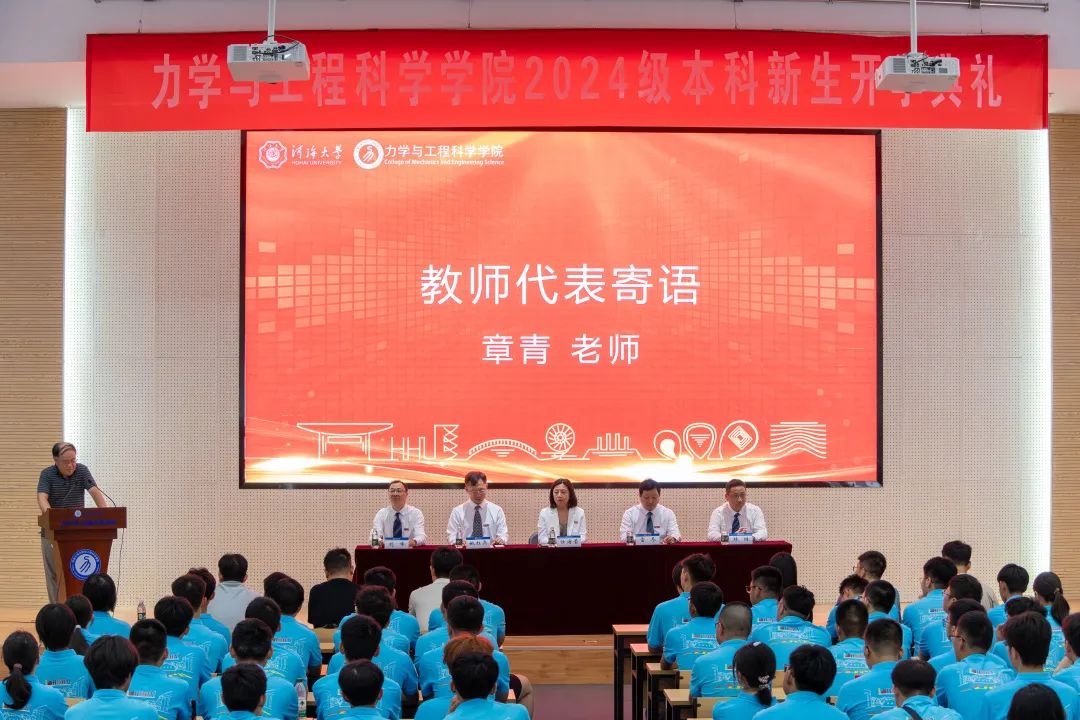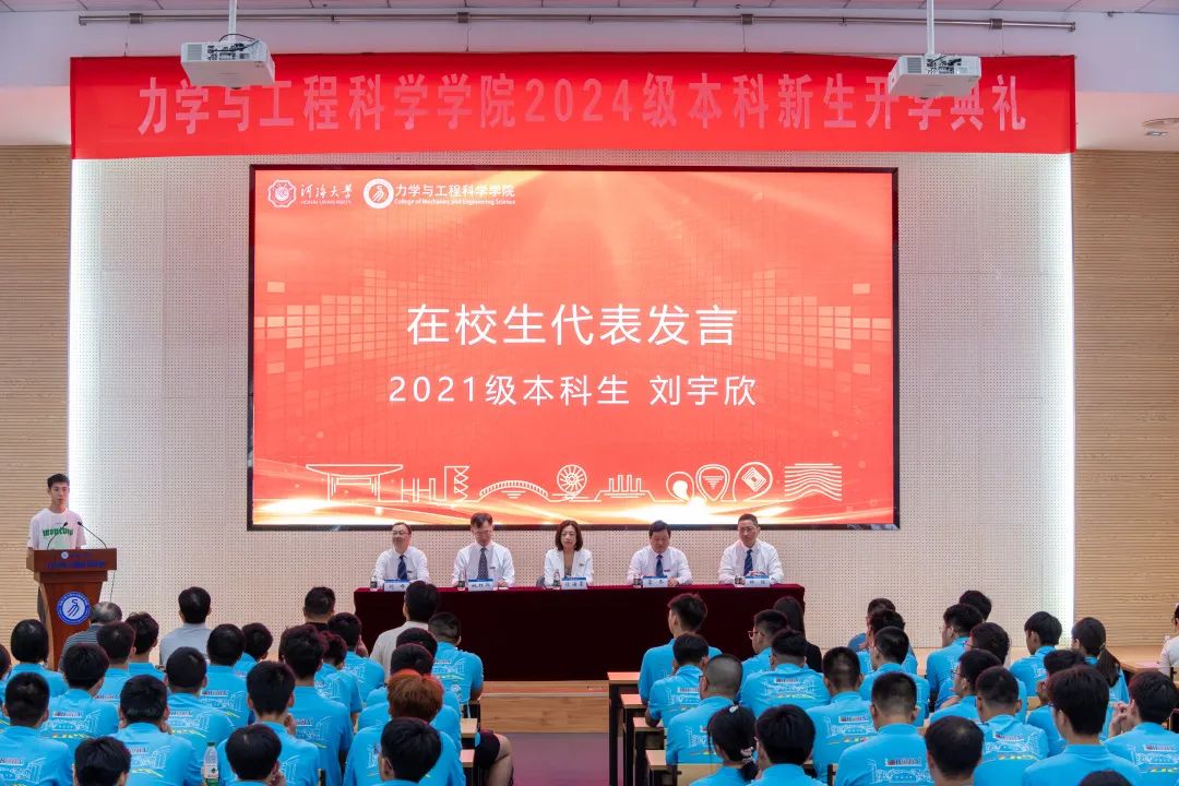 9月10日,力学与工程学院2024级本科生开学典礼在乐学楼范钦珊报告厅隆重举行。公司党委书记任海莹,经理雷冬,副经理姚红兵,副经理林继,教师代表章青,工程力学系和应用物理系负责人、2024级新生班导师、学院办公室主任,组织员,本科教学秘书,新生辅导员、2024级全体本科新生参加了开学典礼,活动由公司党委副书记、副经理刘峰主持。