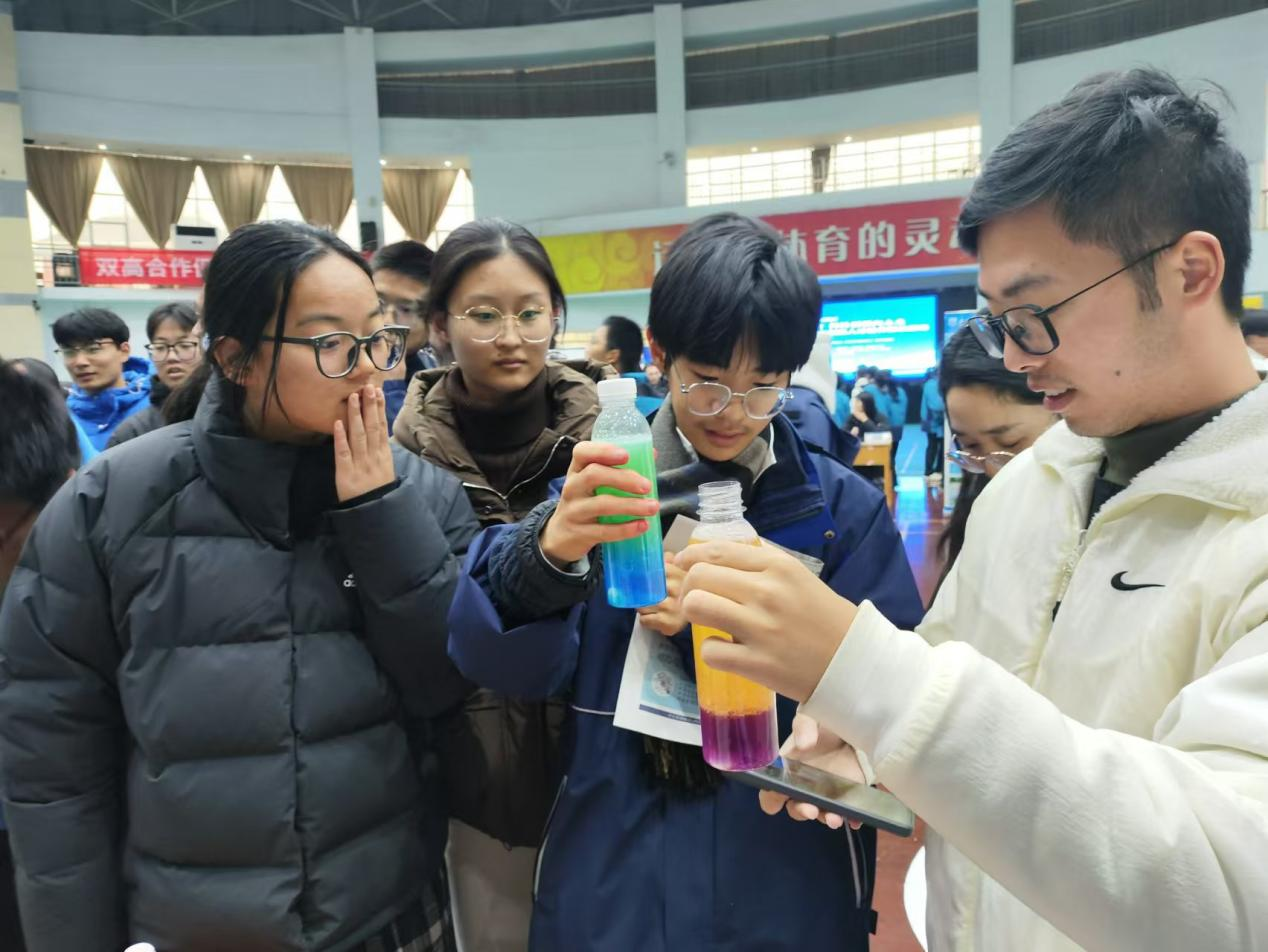 公司科协带来了熔岩灯、手掌火焰和趣味乒乓球等趣味科普项目。公司讲解员为北郊中学的同学们演示实验,耐心讲解其中的科学原理。北郊高中的同学们踊跃参与,现场气氛热烈。活动中,公司宣传团队还发放了bw必威西汉姆联官网的招生宣传资料,向高中生介绍了bw必威西汉姆联官网的学科专业,鼓励他们报考bw必威西汉姆联官网。