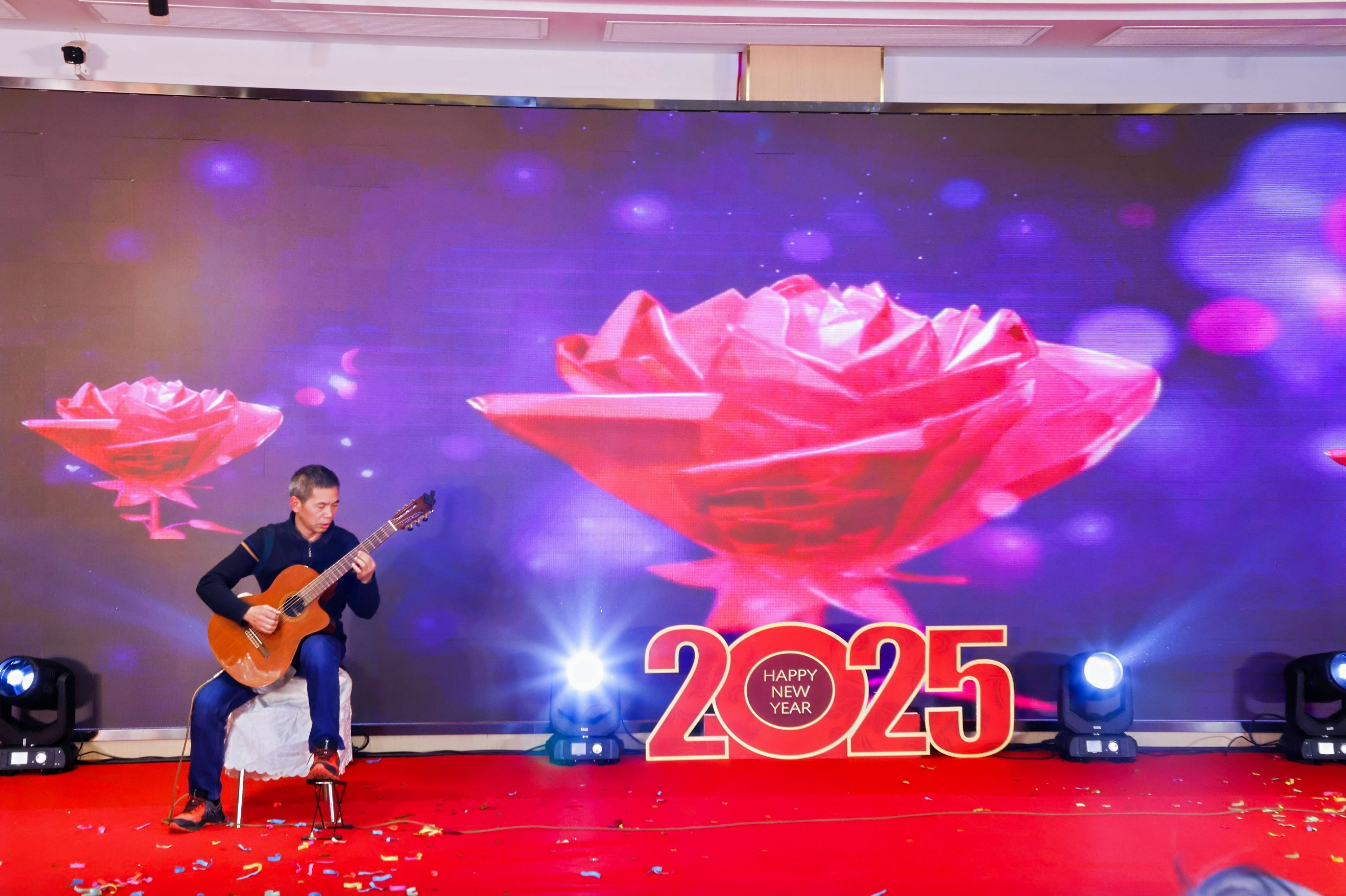 水力学与流体力学研究所的合唱《好一朵美丽的茉莉花》,微纳物理与器件研究所的合唱《我只在乎你》展示了老师们在科研工作之余的艺术才华。动力学与控制研究所曹茂森教授和微纳物理与器件研究所徐萌老师合作的朗诵《四月的纪念》将联欢会推向了高潮,深情真挚的情感打动了现场每一位观众。微纳物理与器件研究所陆雪平老师在活动现场进行木吉他弹奏《九百九十九朵玫瑰》,展现了音乐的非凡魅力,赢得了现场观众的热烈掌声。
