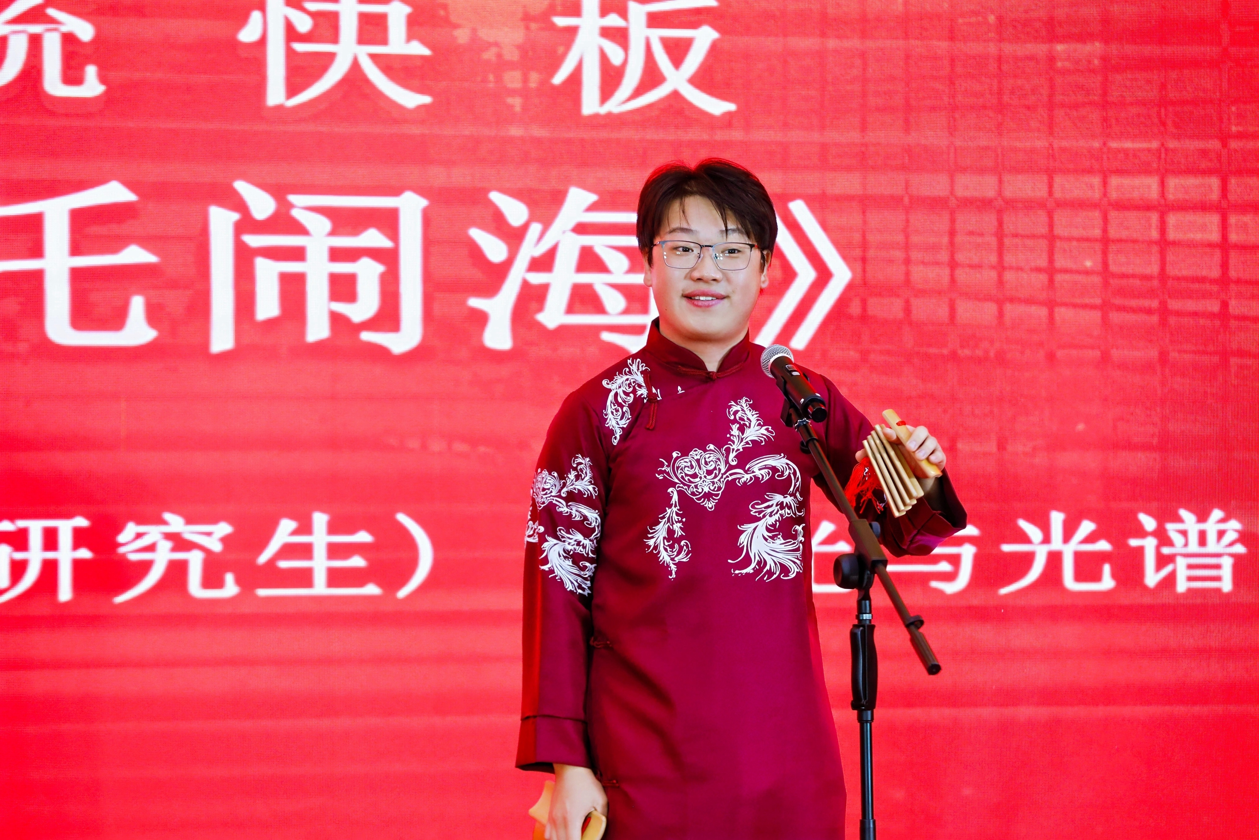力学与物理实验中心的邱玲老师带来的舞蹈《亚古丽娜》,以其优美的舞姿和欢快的节奏为现场观众呈现了视觉上的享受。激光与光谱应用研究所的李阳升(研究生)带来的传统快板《哪吒闹海》让在场的观众充分感受到传统文化的魅力。动力学与控制研究所的曹茂森带来的独唱《往日时光》,深情的歌声和真挚的情感将现场观众带入了美好的回忆之中。