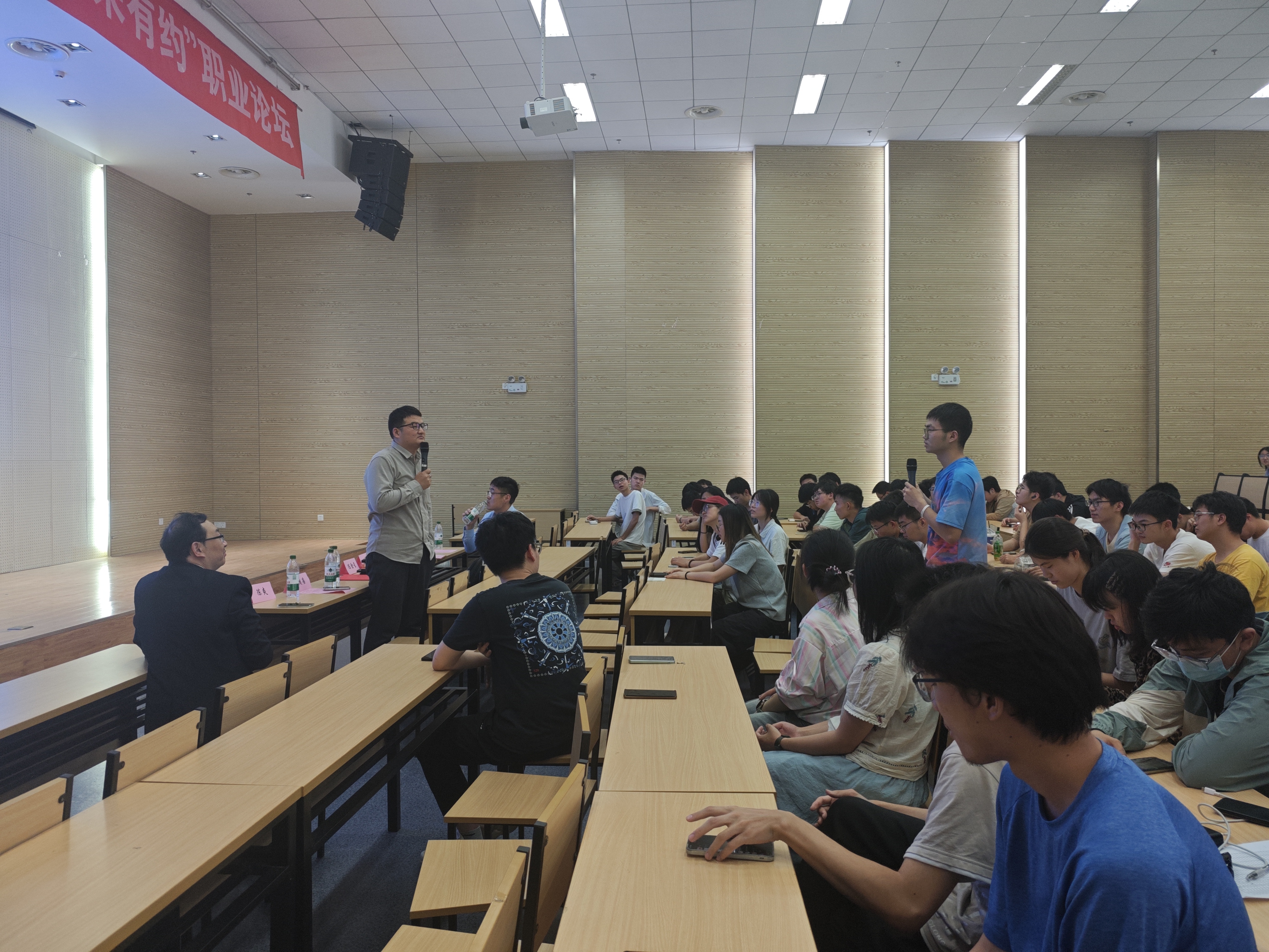 在互动环节,员工嘉宾和同学们就“如何平衡学习和实习”“如何在就业竞争激烈的环境下脱颖而出”等问题展开交流,鼓励同学们在大学期间夯实专业基础,积极参与就业实践项目,有针对性地进行能力提升。