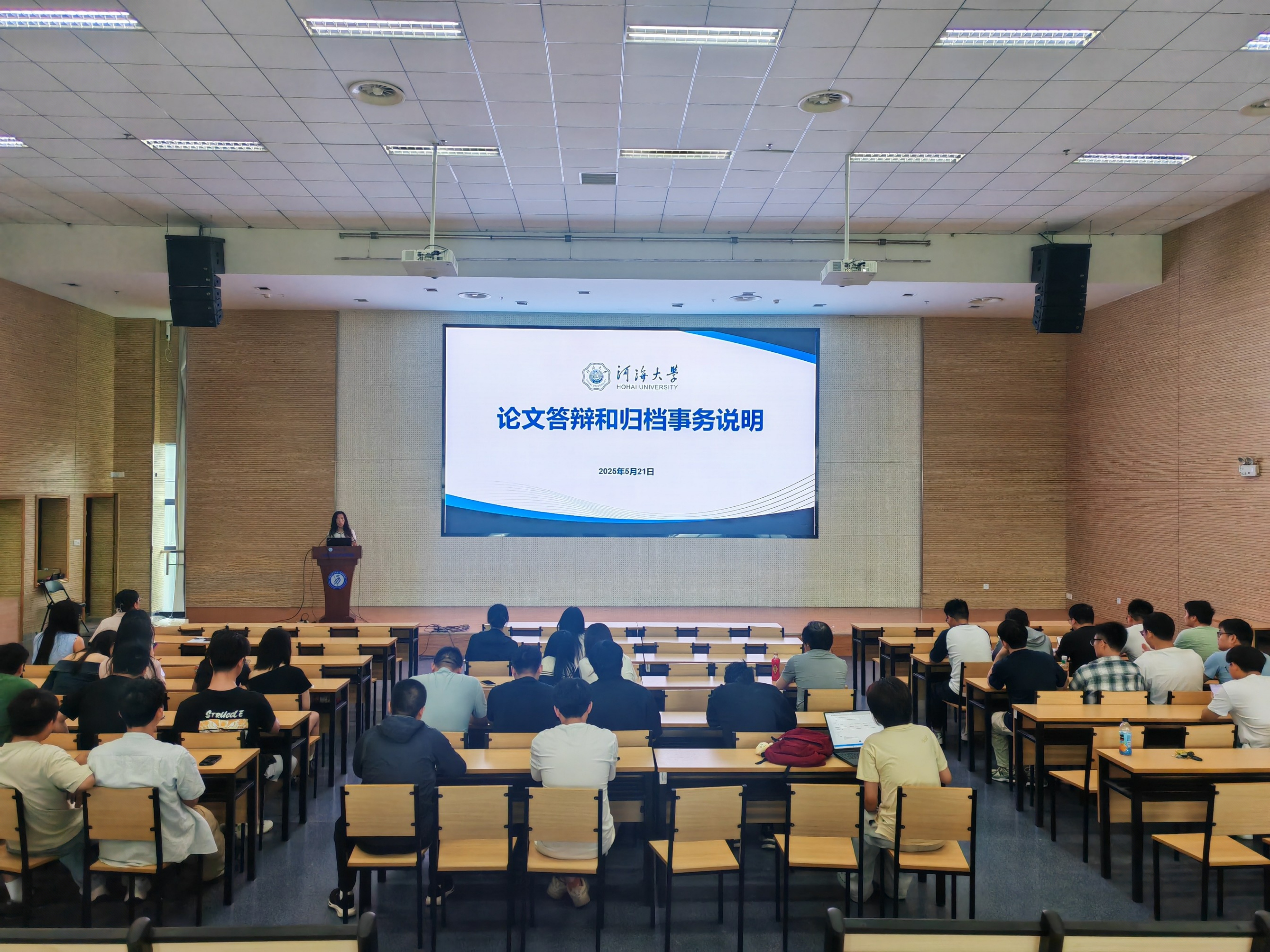 首先,研究生教学秘书章国芳老师就毕业答辩流程和材料归档注意事项做了详细的说明。章老师提醒,硕士生归档材料是对整个硕士阶段学习生涯的完整反映,希望同学们务必认真对待,严格按照学校要求认真、准确填写材料,确保格式规范,内容完整。