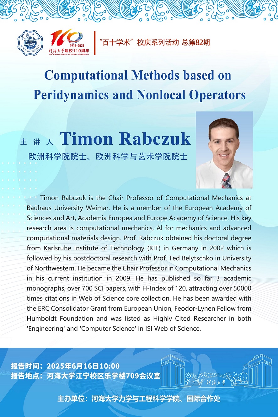 “百十学术”暨2025年全国科技活动周系列活动:bw必威西汉姆联官网学术报告通知(2025-15):Computational Methods based on Peridynamics and Nonlocal Operators