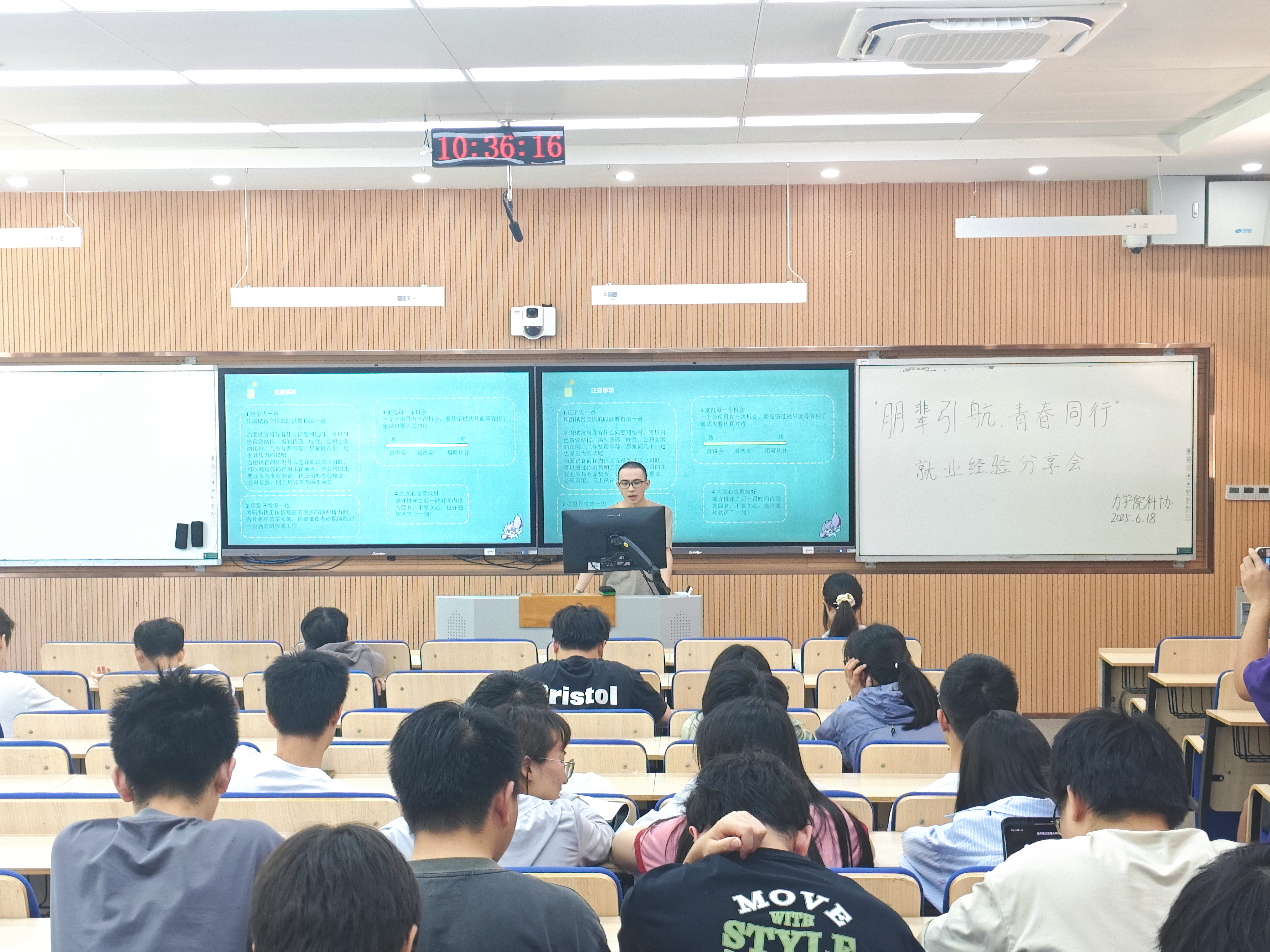为深入学习贯彻习近平总书记关于青年工作的重要思想,落实“共青团促进老员工就业行动”,引导老员工立足实际、找准定位,树立理性、平实的择业观、就业观,提升积极的就业意识,助力毕业生高质量就业,学院团委于6月19日在江宁校区致用楼120教室举办了“朋辈引航,青春同行”就业经验分享会暨“老员工就业引航”主题团日活动,邀请了2022级硕士研究生徐焱明、范思圆和2021级工程力学本科生唐新、汪波波4位优秀毕业生与同学们面对面开展经验交流。2026届本科生、研究生参与本次活动。