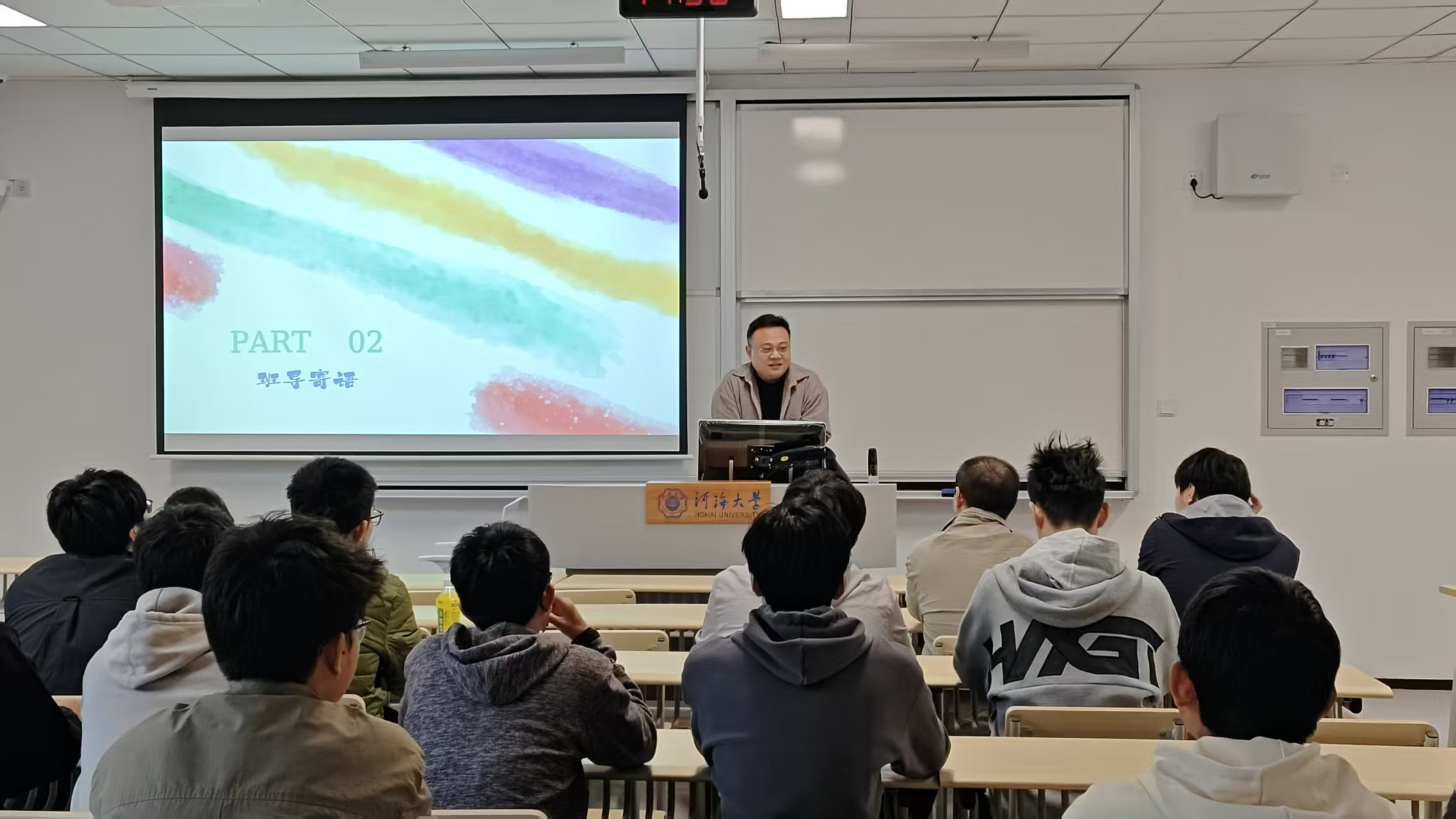 24级力学二班主题班会上,班长赵奥佳同学回顾了班级大一学年成绩,分析各门课程考试通过情况,鼓励同学们重点攻克英语四六级、计算机等级考试。班导师张恒老师根据班级同学情况,分类给出指导意见,建议优秀生深耕专业冲刺保研、中等生突破瓶颈提升成绩、后进生调整方法查漏补缺。