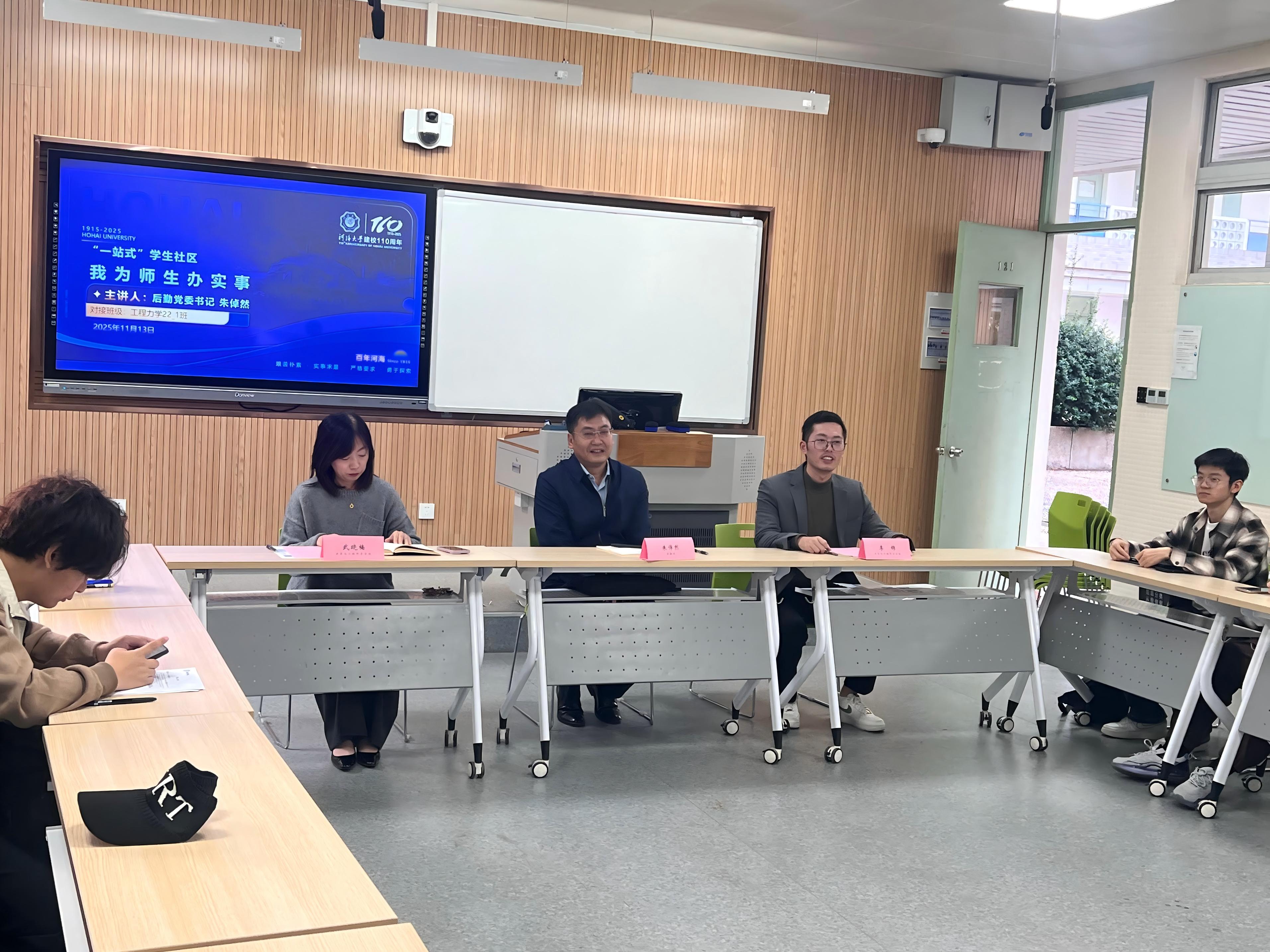为贯彻落实学校关于深入开展“一站式”员工社区的建设要求,践行一线规则,2025年11月13日下午,“一站式”员工社区——“我为师生办实事”座谈会在致用楼121举行。后勤党委书记朱倬然、力学与工程科学公司党委副书记、副经理武晓楠与工程力学22_1班同学齐聚一堂,共话学业发展、共解生活难题,活动由学院2022级辅导员李锦主持。