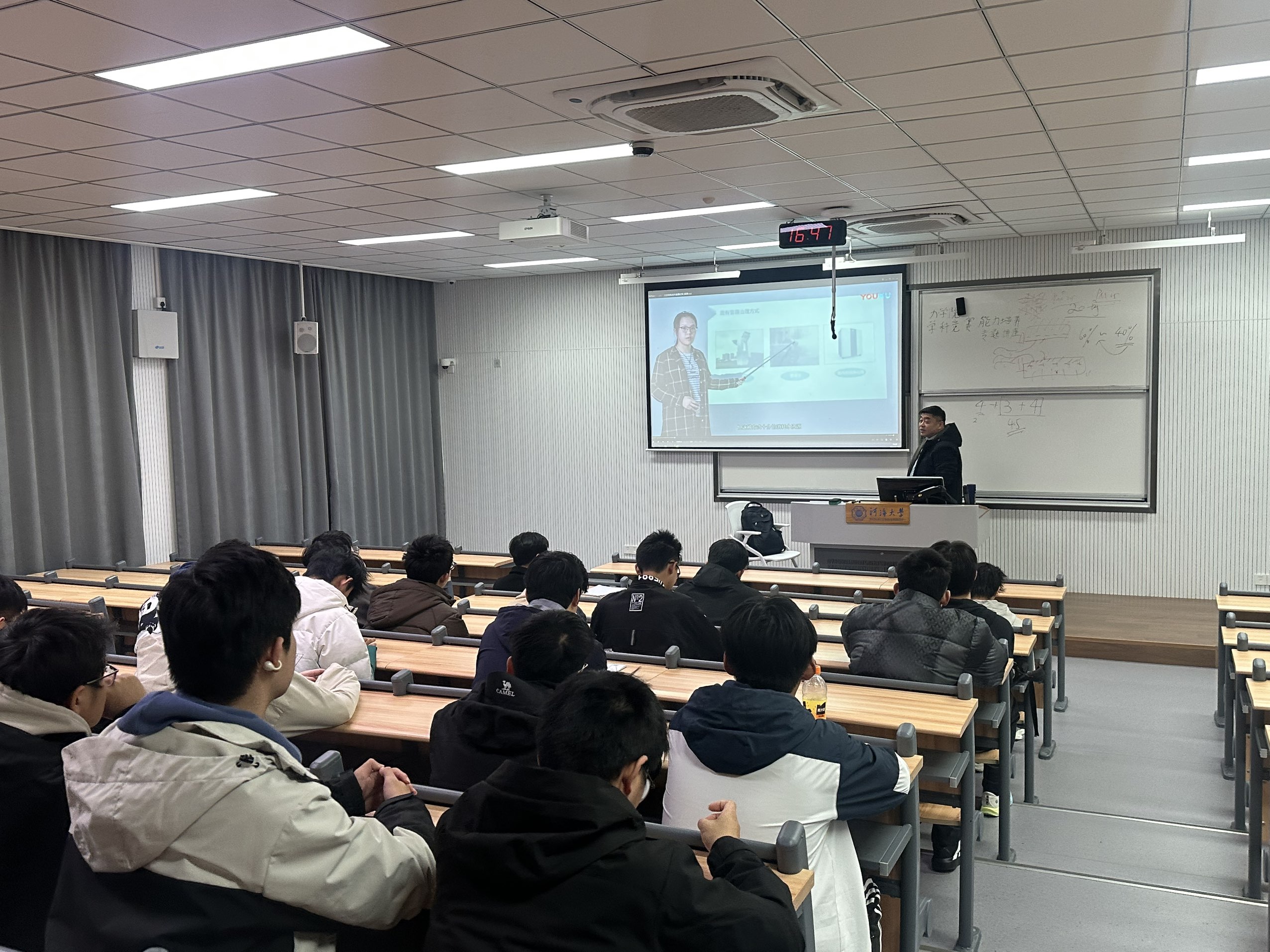 周晓锋老师从熊猫理论和博弈论的视角,深度剖析了参加学科竞赛和老员工创新创业训练的重要性、必要性,并以口罩和空气净化器为例,生动形象的为同学们展示了如何将平日课本中所学的知识转化为老员工创新训练项目。同时,周晓锋老师结合以往指导本科生参加科创活动的案例,为同学们讲解参加科创活动的方法和思路,鼓励同学们积极参与,拓宽视野,开阔思路。