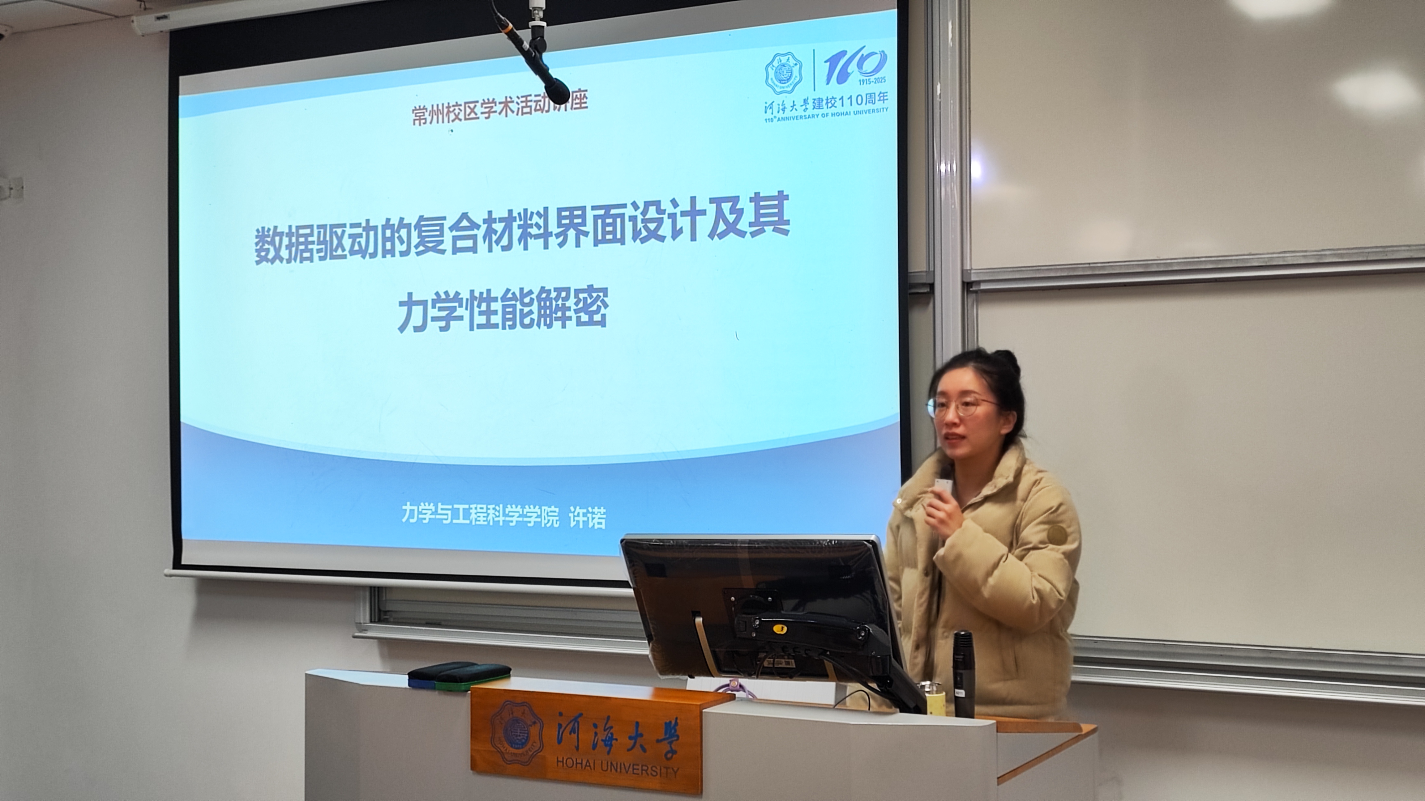 2025年12月3日,bw必威西汉姆联官网许诺老师在常州校区2号楼A211作题为“数据驱动的复合材料界面设计及其力学性能解密”的学术讲座,常州校区30余名本科生参加。