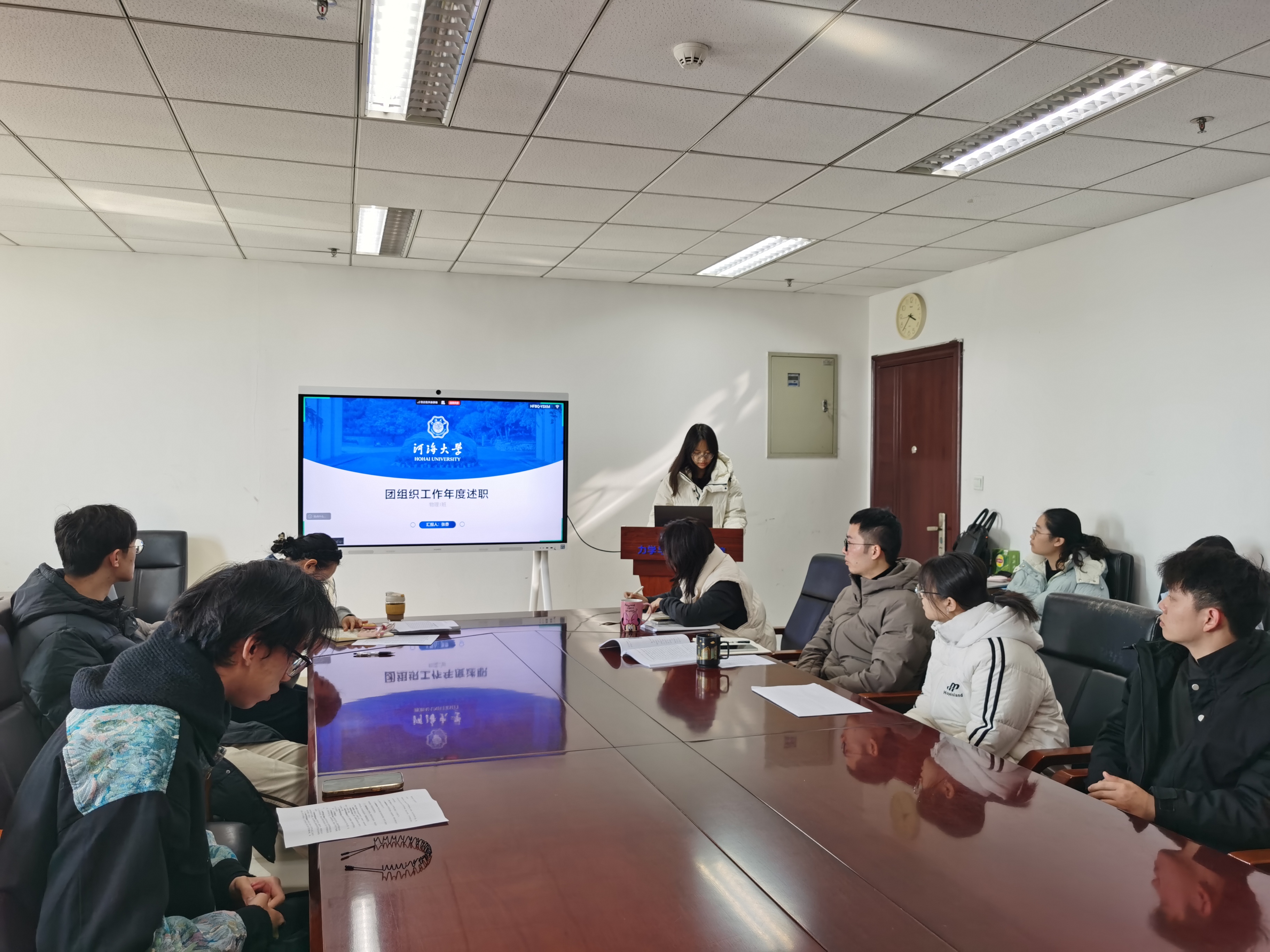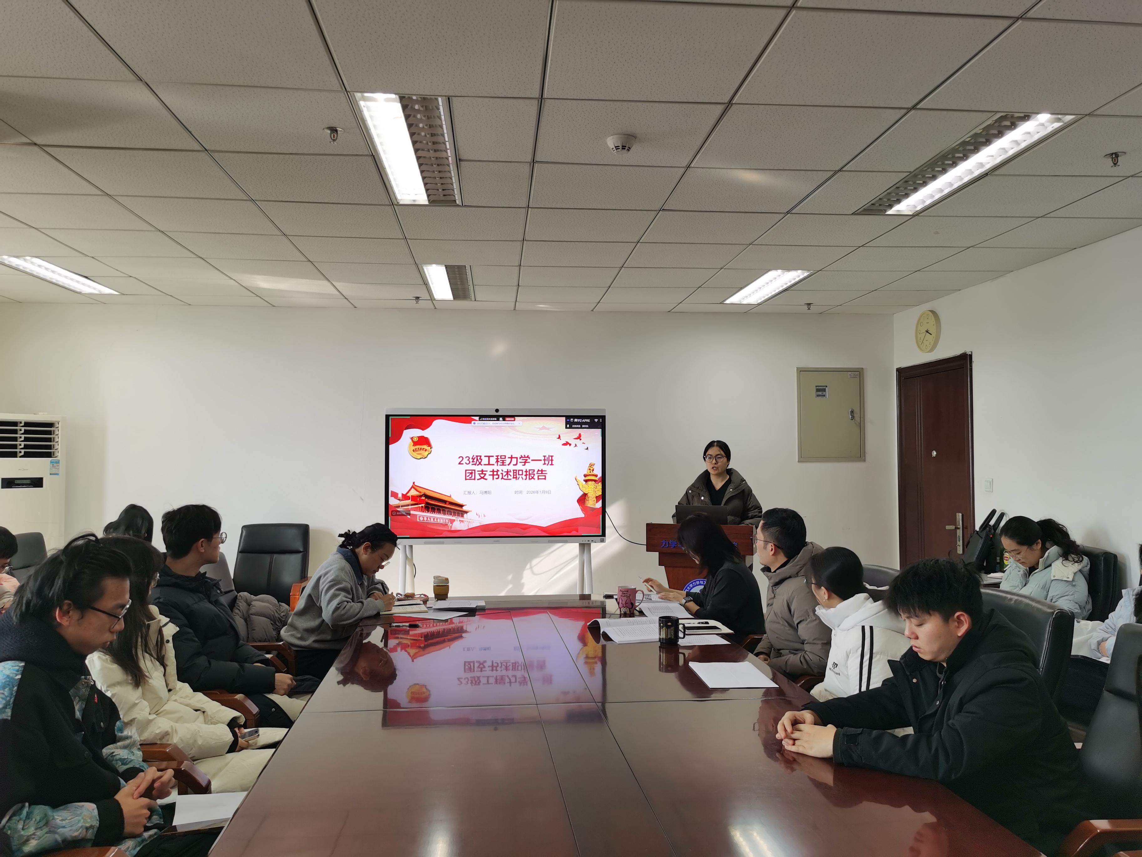 今年学院团支部书记述职评议采取现场述职与书面述职相结合的方式进行,10位团支部书记依次进行现场述职,围绕思想引领、基层组织建设、第二课堂活动开展、社会实践与志愿服务等内容全面复盘了全年工作的开展情况,客观梳理了工作中取得的成绩与亮点,同时深入剖析了工作推进过程中存在的问题与不足,并结合团支部实际情况提出了2026年度的工作计划与改进方向。
